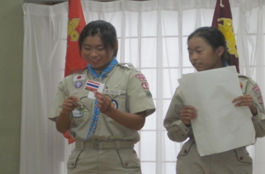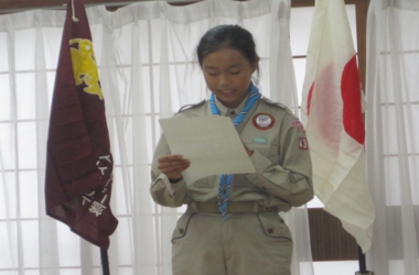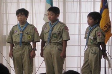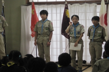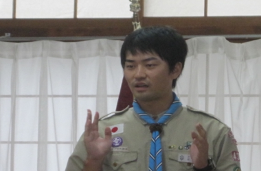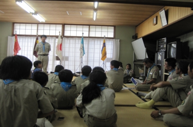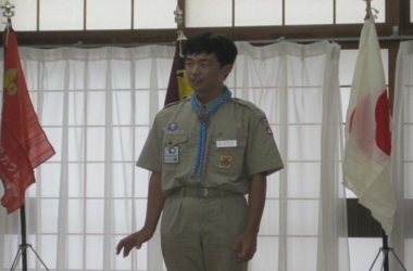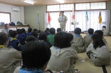 最初にボーイ隊の小林さん、山口さんから第16回日本ジャンボリーの参加体験報告がありました。