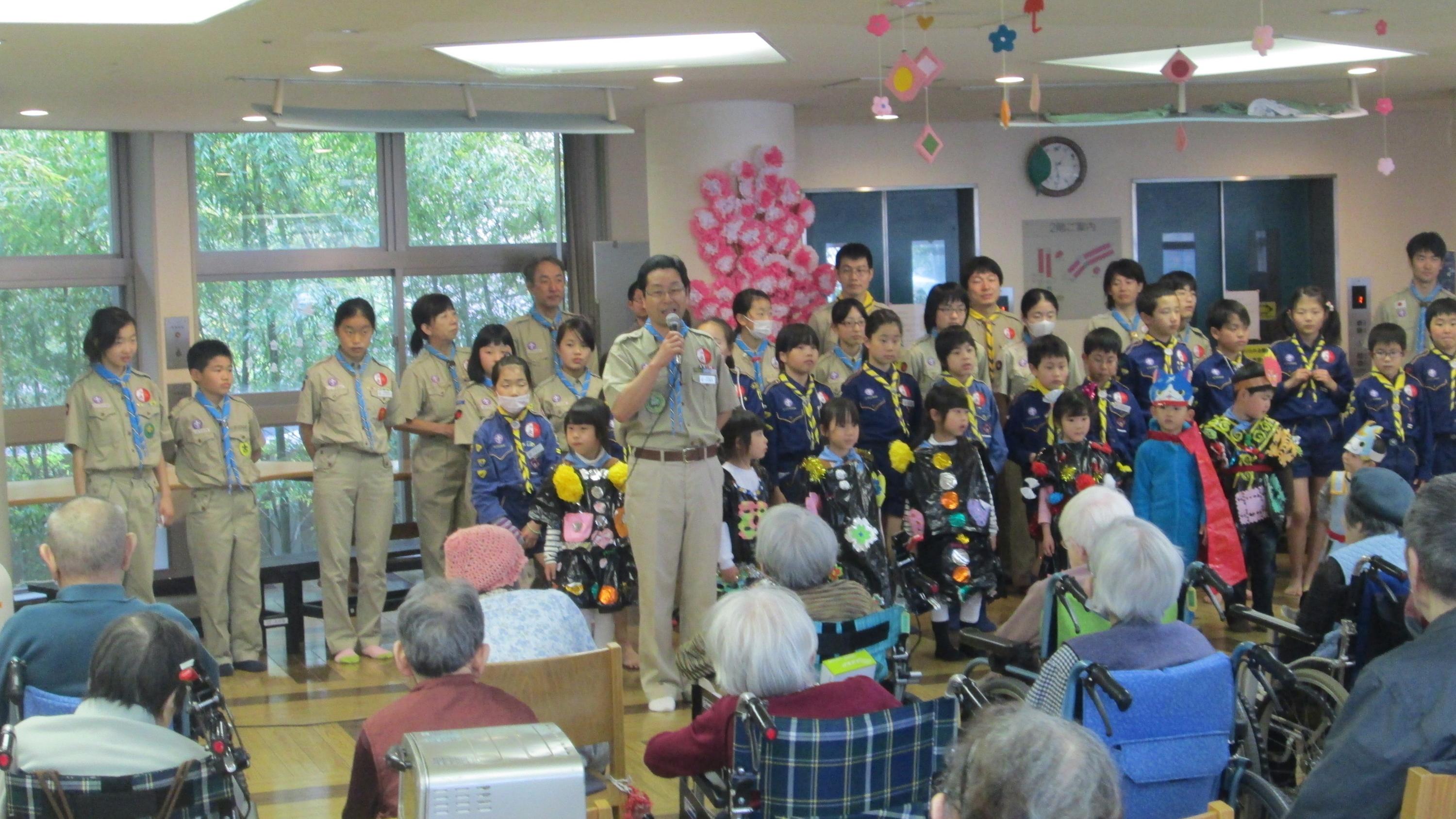 楽しい時間もあっという間に過ぎ、ビーバー隊の隊長が、また来年の桜の咲く時期にお伺いすることを約束して閉会となり、おじいさん、おばあさんからは「今日は本当にありがとうね」とのお言葉をいただいて会場をあとにしました。