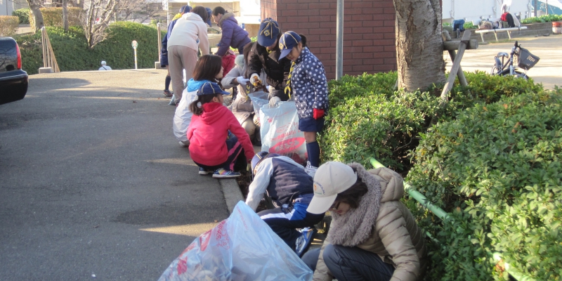 この日は地域の方の清掃日でもあり、一緒に清掃を行ないました。天気は晴、風も静かであまり寒くなく、絶好の掃除日和でした。