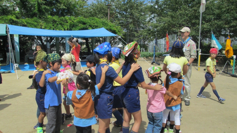 プログラムに参加した体験入隊の子供たちは、スカウト達と一緒に、頭にバンダナを海賊巻にして組ごとに各隊(ボーイ隊、カブ隊、ビーバー隊)が作ったゲームコーナーをまわりました。