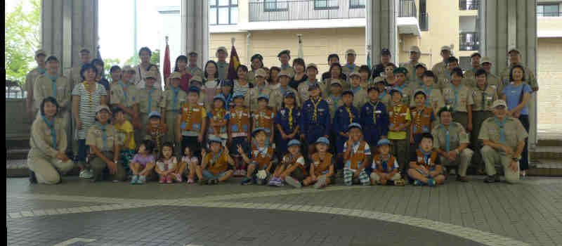 昼食を挟んで、午後から場所を地下鉄学園都市駅前のユニバードームに移って43団の上進式とカントリー作戦を行いました。
